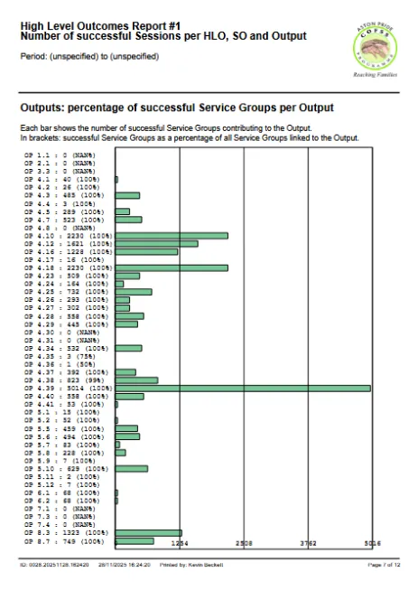 Each intervention was categorised with an outcome so weekly, monthly and annual reports could show what was working and where resources were going.