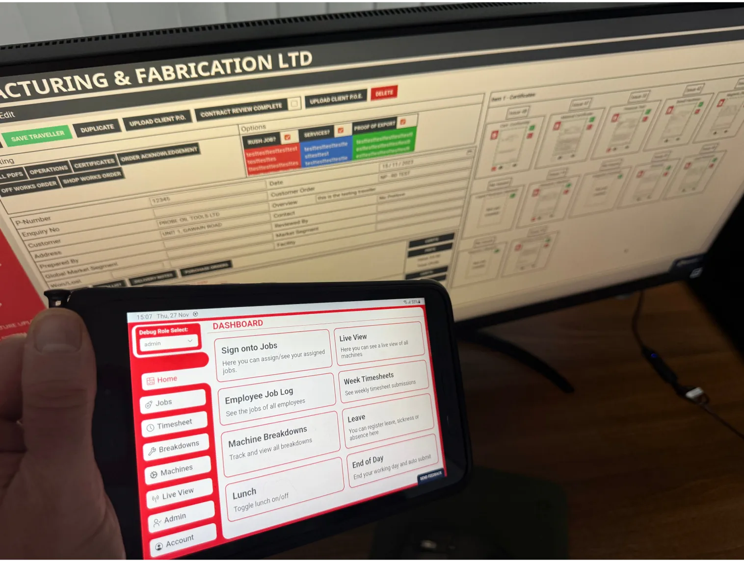 The replacement system we developed was a great success and in 2024 were given the go ahead to build on this success and develop the third generation. The goal was an updated CRM and ERP that integrated with a mobile tablet app used by the shop floor machine operators. This would improve planning, shop-floor workload, quality and dispatch, with clear dashboards and even faster flexible reporting.
