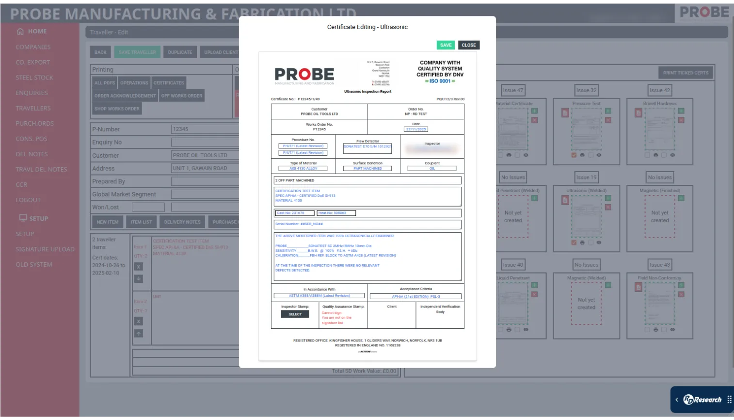 Probe Manufacturing & Fabrication (formally Probe Oil Tools) builds precision components for offshore oil and gas, where traceability, certificates and delivery dates all matter. More than 15 years ago we inherited a legacy database that struggled with day to day operations.